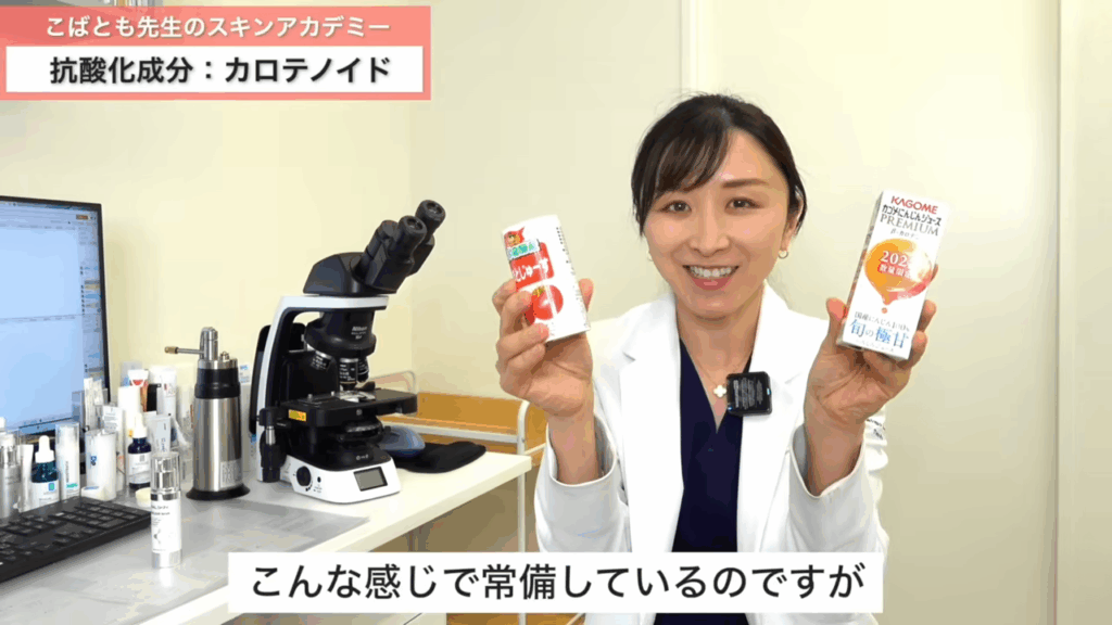 なので私もにんじんジュースだったり、トマトジュースのようなカロテノイドが豊富な野菜ジュースをよく飲んでるんですけれども、実は、机の引き出しにも常備しています。