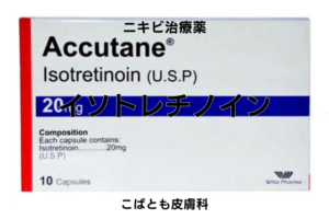 もしこのイソトレチノインをニキビ治療なども兼ねて飲みたいというような場合は、内服期間はもう少し長くなります。もし内服期間などご質問がある方は、一度カウンセリングにお越しいただけたらと思います。