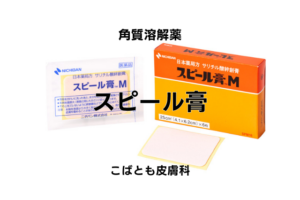 具体的には「サリチル酸ワセリン」と呼ばれるような塗り薬だったり、あとはスピール膏と呼ばれるような貼り薬があります。