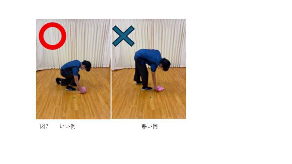 床から物を拾うときに膝を曲げる